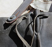 original 60er Jahre, Gotha in Thüringen, mit viel Patina... Eine klassisch kurze Jungs-Lederhose aus der DDR der 60er Jahre. Der Hersteller ist nicht erkennbar aber in Stil und Ausführung könnte sie von der PGH Lederbekleidung in Gotha / Thüringen sein. Genäht aus robustem Rind-Spaltleder, innen rauh und aussen ziemlich speckig und glatt gewetzt. Taschenfutter aus Leinewand. Mit Knopflatz und Plastikknöpfen. Der originale Träger mit einem kleinen Geldtäschlein via Messingzip. Keine Popotasche und auch keine Messertasche. Viel getragen aber immernoch top erhalten und mit Lederbalsam weich gepflegt. In der rechten Tasche hab’ ich noch einen DDR-Groschen von 1967 gefunden. Den lass’ ich drinnen. Bei der DEFA finden Sie unter YT einen passenden Film über einen kleinen DDR-Rabauken, der so ne Ledehose trägt: “Philipp der Kleine“… Bitte vergleichen Sie die Idealgrösse Ihres Rabauken mit den ausgemessenen Angaben! Die in Blau gedruckten Werte sind in etwa gängige Vergleichsgrössen von Heute. Mein Modelljunge hat ne 134...