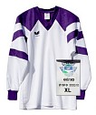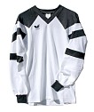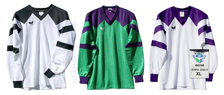 Erima by Adidas, 95er Jahre: Ein original ERIMA Fussball-oder Handballtrikot der 90er Jahre. (ERIMA = Erich Mak in Reutlingen), der Erstausstatter der deutschen Nationalmannschaften von 1936-76, danach unter Adidas. Also eigentlich ein Adidas-Trikot made in Germany! Hergestellt aus leichter und etwas elastischer Baumwolle mit 40% Polyfaseranteil, sehr atmungsaktiv auf der Haut. Mit angesetztem Kragen und elastischen Ärmelbündchen. Die dunklen Partien sind eingenäht, nicht nur gedruckt! Ohne Rückenbeflockung. Innen das unter Adidas um 1995 verwendete Label „Quality of Erima“. Aus der Auflösung eines grossen süddeutschen Sporthauses. Noch nie getragen und immernoch topfit in Form. Jedoch in II. Wahl, kann jedoch keine Fehler finden... Noch ein Hinweis: Ab den 90er Jahren wurden diese Art Sporttrikots weiter und legérer getragen. Bitte vergleichen Sie Ihre Idealweite mit den ausgemessenen Angaben! Die in Blau gedruckten Werte sind in etwa gängige Vergleichsgrössen.