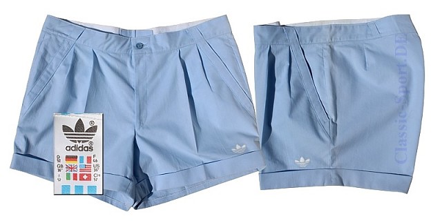 Adidas / Tunesia, 100% Cotton, 80er Jahre Eine klassisch kurze Herren-Tennishose aus 100% luftiger Baumwolle in Hellblau / Pastellblau von original ADIDAS / Tunesia vom Anfang der 80er Jahre. Mit Knopf und Zip, zwei Seitentaschen sowie einem schön gestickten Adidaslabel in Weiss vorne am Bein. Stammt aus einem grossen süddeutschen Sportartikelhaus und ist immernoch neu und topfit! Ein original vintage Kleidungsstück für Urlaub und heisse Sommertage... und im normalen Sportartikelhandel nicht mehr zu haben! Diese Adidasgrössen fallen knapp aus! Die blauen Vergleichsgrössen sind zutreffender. Der Bund ist nicht elastisch!